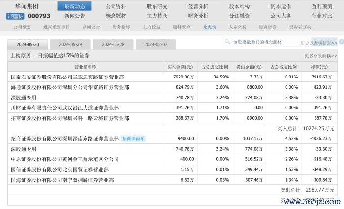 龙虎榜显示,5月30日,国泰君安三亚迎宾路营业部狂买7920万元,是当天地板上“捞筹码”的主力军,以5月30日0.88元的地板价来算,该席位一口气拿下了9000万股的筹码,出手相当惊人。就3月末的股东明细看,国泰君安三亚迎宾路营业部的一顿狂买,或许已经能够跻身前三把交椅,因为华闻集团第二大股东持股1.23亿股,第三大股东持股7850.63万股。