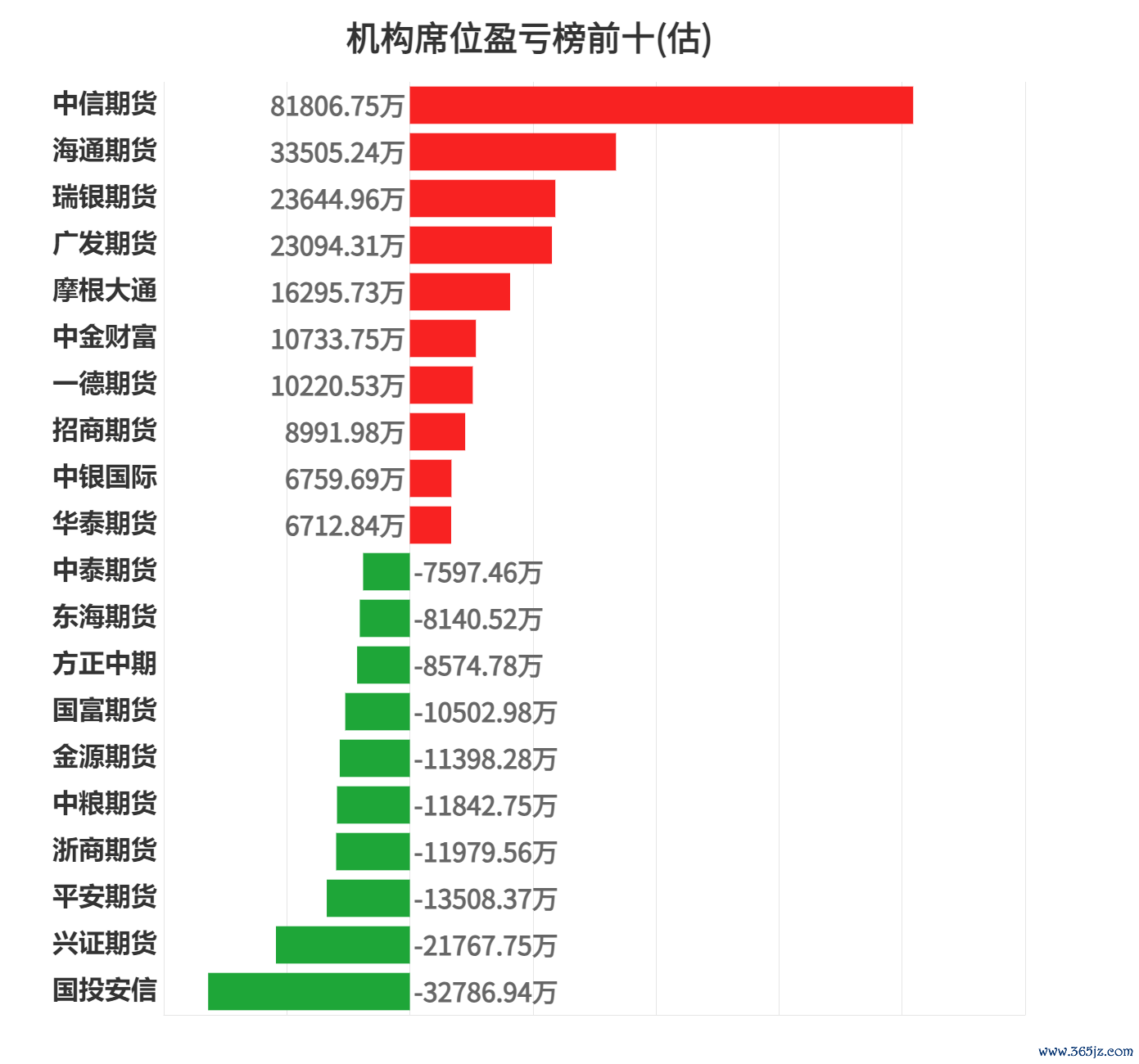 今日亏损前三席位为金源期货、建信期货、申银万国,分别亏损8088.74万元、4578.11万元、3753.41万元。