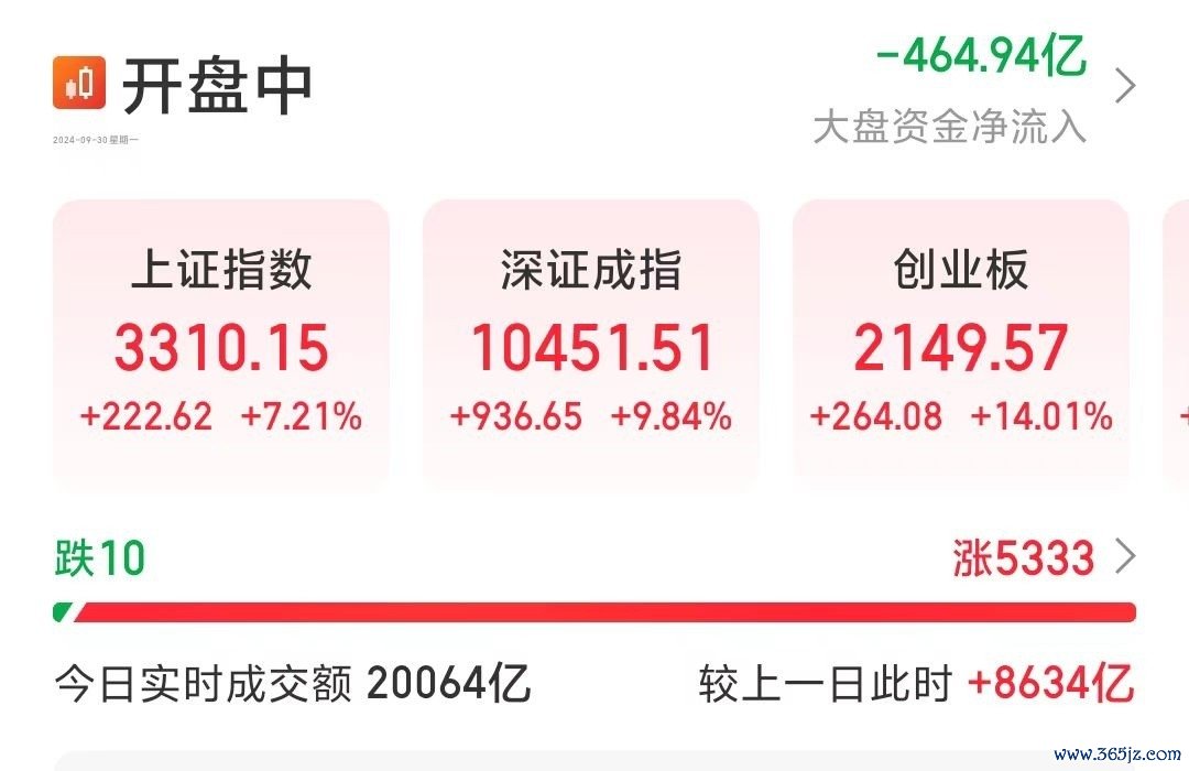 此外,A股三大指数再次大涨,沪指涨7.21%,深成指涨9.84%,创业板指涨14.01%,续刷单日涨幅的历史记录。